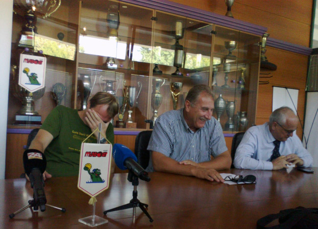 Nakon pressice u Trofejnoj dvorani uslijedilo je druženje sa igračima na otvorenom bazenu. Svi novinari okupili su se oko Perice i zatražili potvrdu onoga o čemu je dopredsjednik govorio, a Bukić je objasnio svoju situaciju i dao uvid u predstojeću sezonu Triglav Jadranske lige. Objasnio je da je ulaz Pro Recca u Jadransku ligu dobra stvar, posebice sa marketinškog aspekta, a da se na ovaj način stvara liga koja ima 6 od 7 najjačih klubova na svijetu. Razumljivo mu je zanimanje LENa s obzirom da se stvara liga koja je po jačini jednaka Euroligi, ali ipak je najvažnije da je svih osam hrvatskih klubova još uvijek u lizi. Obavijestio nas je da je Cattaro definitivno odustao od ovogodišnjeg natjecanja u Jadranskoj ligi, a da se za ulaz na njegovo mjesto prijavio Partizan. Prepreka postoji u vidu jednoglasnosti svih vaterpolo saveza za ulazak novog kluba. Dok su Hrvatski i Slovenski vaterpolo savez odobrili ovaj ulazak, Crnogorci se protive ulasku zbog nepodmirenih dugovanja koja su rezultat prelaska mlađih igrača u srpske klubove. Druga prepreka su naravno financijske prirode sudjelovanja Partizana u Triglav Jadranskoj lizi. Konačan ishod ove prijave znati će se do kraja idućeg tjedna s obzirom da Crnogorski savez početkom idućeg tjedna treba iznijeti svoj stavu. Prvo kolo Jadranske lige počinje u 17. rujna, a Mladost na Savi dočekuje Šibenik. Jug u prvom kolu kod kuće ugošćuje POŠK. Ove godine igra se jednokružno, pa se liga dijeli na dva dijela koji će odigrati i uzvratne utakmice. Prvih šest momčadi razigravat će za Final four koji je na rasporedu 24. i 25. ožujka. Ukoliko Partizan uđe u ligu onda bi vjerojatno prema riječima dopredsjednika saveza razigravalo sedam momčadi.