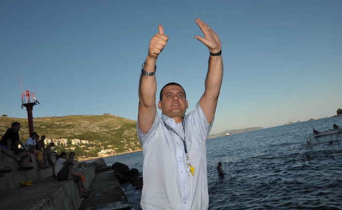 Sa po 2 sata na svakoj ruci, te u svakom od đepova sakoa po 7-8 penkala. Bili smo spremni za start. Mage se uhitio zviždaljke, a Đerek mikrofona. Ladies and gentelman, pa malo Talijansko, Francusko – Engleskog što mislim da nitko na Reli nije razumio. Krenuli smo. Domaća Uvalica protiv jakih i nazovimo ih slobodno iznenađenjem Divlje lige ekipe iz Cavtata – Kamen Mali. Plivanje za loptu, a ovi iz Uvalice odma na defenzivu. Trener Ante Đapić tkz. Đapa je reko: «Ni ne trudite se – oni su svi bivši vatrepolisti.» Svak barem po 10 godina treniranja puta 18 – dobro Tonči znaš li koliko je to godina !!!!!