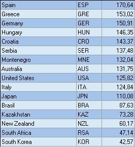 Što se tiče učinka reprezentacija, najbolja je Španjolska.