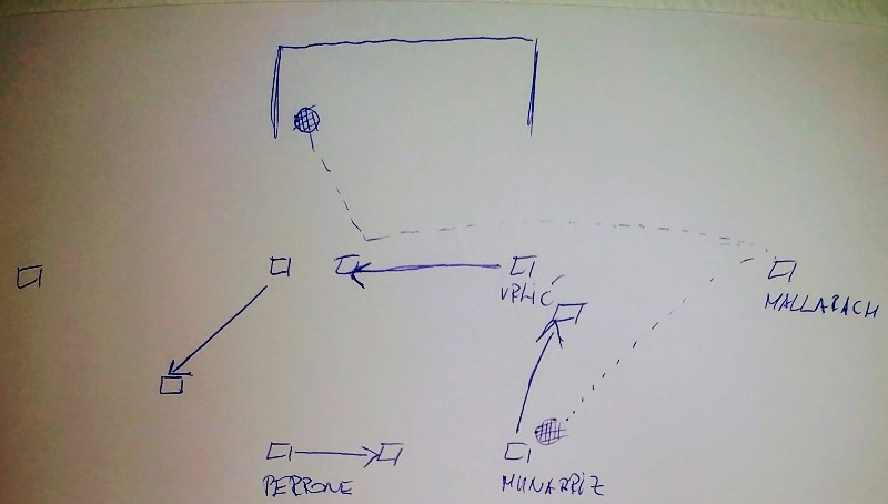 Odlika velikih trenera da imaju plan B, plan C… kad originalne zamisli ne prolaze. I da ih znaju primijeniti, da tijekom utakmice vide gdje i kako reagirati. Tako je i Chus Martin u ovom trenutku naložio Munarrizu da u svakom pogodnom trenutku upliva na jednu od stativa kao drugi sidrun i na taj način prisili Jugovu zonu na povlačenje s više igrača. Tako je i Mallarach zabio za 6:2 nakon što je Munarriz ušao s Jokovićem s lijevog vanjskom na prvu stativu. Lozina je zabio s dva metra nakon što ga je Famera dosta izgurao u desno, ali kao lijeva se okrenuo i laganom pliskom prevario Lopeza koji je morao bolje reagirati na ovaj udarac. Nanizala je Barceloneta opet tri napada u kojima je Jugova zona bila odlična, čak i kad je Munarriz opet ušao, ovaj put na drugu stativu sa Rašovićem koji ga je dosta dobro kontrolirao, a i s Bustosa se mogla igrati dosta plitka zona. On na kraju šutira sa srednjega metar iznad gola. Međutim, Barceloneta je digla nivo igre u obrani. Prvo Jug niti ne šutira u jednom napadu pa zatim Rašoviću iz faula Perrone blokira udarac. Treći put je lopta uspjela biti spuštena do Vrlića i to je drugi igrač više za Barcelonetu. Jako zanimljiva akcija kao na skici: