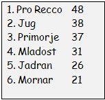 Druge dvije utakmice nemaju baš nikakvog rezultatskog značaja, osim ako Riječanima ne budu potrebni bodovi u slučaju kiksa Juga. A i razlika u kvaliteti protivnika je osjetna tako da se ne očekuju neizvjesne utakmice. Pro Recco će opet doći djelomično oslabljen jer sutra igra i utakmicu domaćeg prvenstva pa će dio igrača na Siciliju.