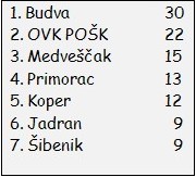 POŠK je nanizao nekoliko pobjeda i izdvojio se na drugom mjestu Lige 7, točnije na ukupno 8. mjestu. Tu će i završiti što će im biti daleko najbolji plasman otkako se igra Jadranska liga. I danas će lakoćom slaviti protiv Kopra koji je u potpunom raspadu, prošlu utakmicu su odigrali sa samo 10 igrača u zapisniku.