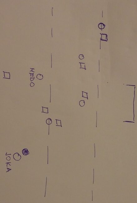 Najupečatljivija greška bila je ona kad su se domaći igrači vraćali u obranu u situaciji 6 na 5 Juga, kao što se vidi na skici ispod: