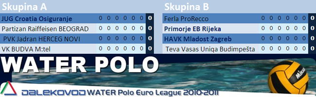 Danas u podne obavljen je ždrijeb drugog kruga Eurolige. S obzirom na činjenicu da su Jug i Pro Recco prvi dio završili sa po maksimalnih 18 bodova u neku ruku je i „pošteno“ da su u različitim grupama. Ples kuglica je odredio ove grupe: