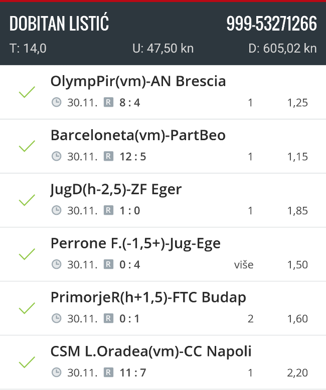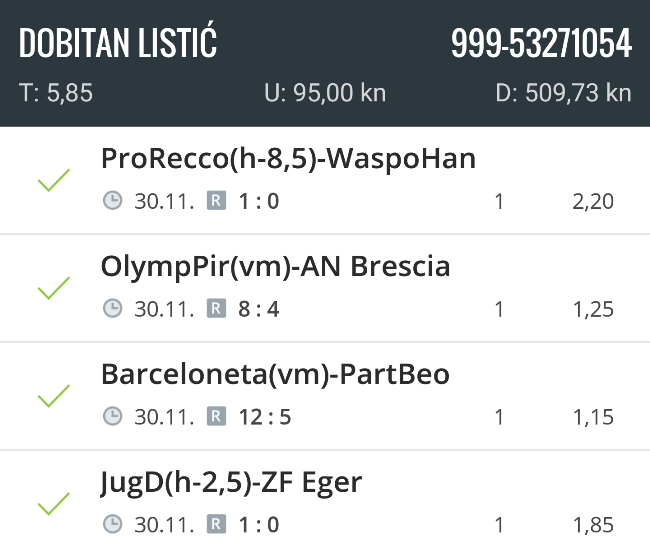 U nedostatku fantasyja kojega je nemoguće organizirati jer je sramotno loše statističko praćenje ovog natjecanja, a i nekih drugih igara koje bi se mogle organizirati čitatelji nam tu i tamo pošalju svoje kladioničarske listiće. Ovaj put izdavajamo dvadobitna iz prvog kola: