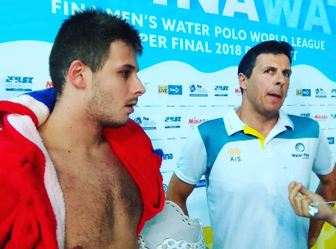 Igrali smo bez kažnjenog Šetke (dakle sa igračem manje u sastavu) i sa kažnjenim izbornikom (navodno 3 utakmice kazne zbog jučerašnjeg crvenog kartona). Tako je naš izbornik u ovoj utakmici za 5. mjesto Mile Smodlaka. Na vratima je počeo Bijač, poluvrijeme 5:4 za nas, a u drugom dijelu utakmice na vrata je stao Marcelić. Izdvojio bih sjajan gol Bašića sa desnog krila i istekom napada. Tijelom u jednu stranu i pliska u bliži gornji kut vratara (nešto kao nama Gojković u Malagi 2008., s tim da je ovo bio teži udarac – iz igre i sa istekom napada, a ono udarac iz faula). Nakon 8:5 pred kraj treće četvrtine, Australci je brzo vraćaju sa dva vezana gola, ali onda sa zvukom sirene Benić šalje dalekometni neobranjiv udarac za +2 (9:7). Na kraju 10:8 za nas i 5. mjesto. Benić, Fatović i Krapić postigli su po 2, a Buljubašić, Miloš, Vukičević i Bašić po jedan pogodak za našu reprezentaciju, dok su Roach i Younger bili najefikasniji kod Australaca sa po 2 postignuta pogotka. Loren Fatović proglašen za MVP-a utakmice i na upit službene osobe koja na bazenu uzima izjave od istaknutih aktera utakmica kako je bilo igrati protiv oca rekao je – dobro, opet sam ga dobio :smile:! Kasnije smo dobili njegovu izjavu, kao i izjavu Smodlake.