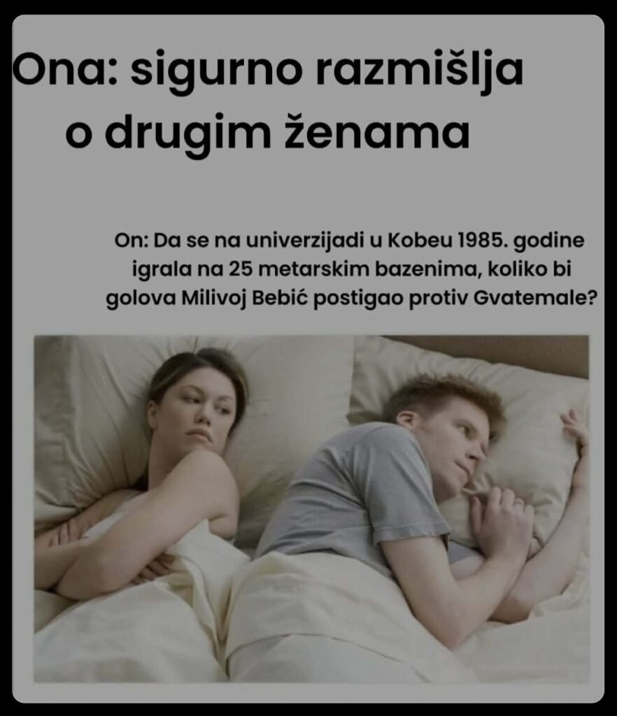 Ali dosta više, ispila sam vas dosta. Samo završit ću ovaj članak sa jednom mišlju koja mi često prolazi kroz glavu kada imam problema sa spavanjem pa se vrtim po krevetu. Šta vi mislite, sa ovim novim pravilima i manjim terenom. Koliko bi golova zabio Milivoj Bebić na univerzijadi u Kobeu na utakmici protiv Gvatemale da se tada igralo na 25 metarskim bazenima?
