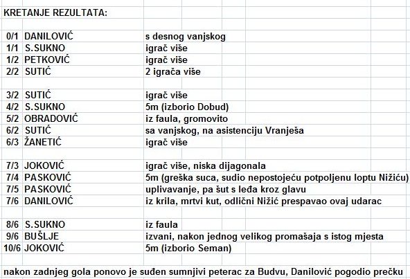 Budva sa čvrstom obranom i dobrim Šefikom, a u napadu se sve svodilo na lucidnost Paskovića i divlju igru Danilovića, koji je ispucao „više nekolicina“ lopti iz mogućih i nemogućih situacija i zabio 2 gola. Centar Vukčević se nije previše vidio, a moj „ljubimac“ Boyd se ponovo istakao, naravno u negativnom smislu. Jednom mu je Sandro uzeo loptu na vanjskom kao da se radi o kadetu, drugi put je ušao sam s krila i poslao smiješni šut u prečku.
