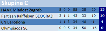 U grupi C je sve jasno. Na početku sezone očekivalo se da će ova posljednja utakmica u Beogradu odlučivati o prvom mjestu u grupi, ali „Crno–beli“ su kiksali protiv Barcelone. I dalje ne igraju baš bajno, eto i Vojvodinu su jedva pobijedili u domaćem prvenstvu. S druge strane ti isti igrači su pod vodstvom Udovičića u kapici reprezentacije odigrali fenomenalno prošli tjedan u Španjolskoj. Ovaj put je Udovičić nasuprotnoj strani. Iako utakmica ne odlučuje o ničemu, sigurno će bit jako zanimljiva i obje ekipe tražit će pobjedu. Mladosti je u subotu puno bitnija utakmica kada im stiže Primorje na Savu. Najveća promjena u odnosu na prvu utakmicu je daje Soro u međuvremenu došao u punu formu, u Španjolskoj je briljirao. Branio je prvo poluvrijeme i primio samo 1 gol uz dosta jako dobrih obrana.