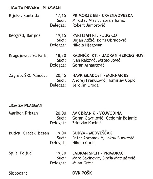 Prvo od preostalih 8 kola Jadranske lige igra se danas. A iduće je već u subotu. Arena je izabrala dvije utakmice za izravne prijenose; Primorje i Crvenu Zvezdu te Partizana i Juga. A i u preostale dvije očekuje se velika borba za bodove koji svima jako puno znače.