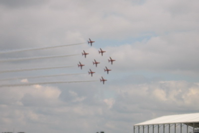 Mjesto je bilo dobro, jer bolidi sporije prolaze, imamo solidan pregled zadnjeg dijela staze prije startno-ciljne ravnine i imamo ekran ispred sebe :smile:. Oko podne ipo su prošli svi vozači na kamionu, i pozdravljali publiku (ponos silverstone grada je drivers parada) , onda nekakva limena glazba, himna, i air show akrobatske skupine Red arrows. Stvarno su dobri bili, samo malo pretihi :smile:, onda je Jackie Stewart provozo par kurgova u staroj matri, neka čudna crvena lola je isto vozila, pa safety car…. i onda utrka… Redbullovi očekivano dominatni, onda Brawn, Ferrari, Williams. Ekipa je bila razočarana jerbo je Button završio tek 6.(mada se trudio), a Hamilton 16. Tu smo stali nekih pola sata, pa smo krenuli u đir oko staze, i pronalazli skroz dobra mjesta za gledat. Vidili smo bili sudar Bourdaisa i Heikija 🙂 nažalost, zajebo sam slike sa utrke, nešto sam se igro sa aparatom i nisam skonto da su slike pretamne (mislio sam da je to zbog odsjaja sunca u ekran), pa ove što vidite, i nakon obrade, izgledaju ko da su slikane mobitelom.