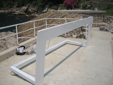 Jutros je odrađen lijep dio posla, 1 bara je prenesena do tarace, ostrugana i dana prva ruka piture. Na početku bih samo spomenuo organizacijske nesposobnosti Rade Garića, poznatog i kao Popularni Rade ili samo Predsjednik. Naime, Nikola Biličić Bile je najavio svoj dolazak u 0915 na Danče, dok sam ja trebao doći u 9.