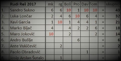 Nastavljamo s objavljivanjem glasova za Trofej „Rudi Reš“. Danas su na redu Davor i Tomislav koji su Sandru Suknu dali maksimalnih 20 bodova koji se tako malo izdvojio na vrhu: